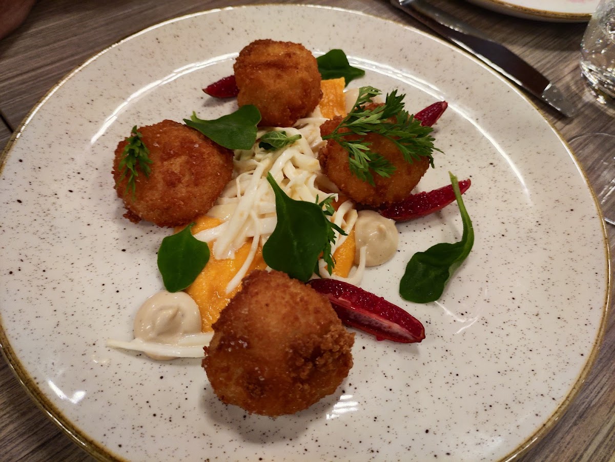 The menu is thoughtfully put together, balancing comfort with creativity. One of the highlights that regulars often talk about in reviews is the Crab Croquette. It’s crisp on the outside, soft and rich inside, and feels indulgent without being heavy. On the lighter side, the Roasted Beetroot Macadamia Green Pea Hummus Crostini Goat Cheese and Cassava brings together earthy, nutty, and creamy notes that work surprisingly well together. It’s the sort of dish that shows how much care goes into each plate.