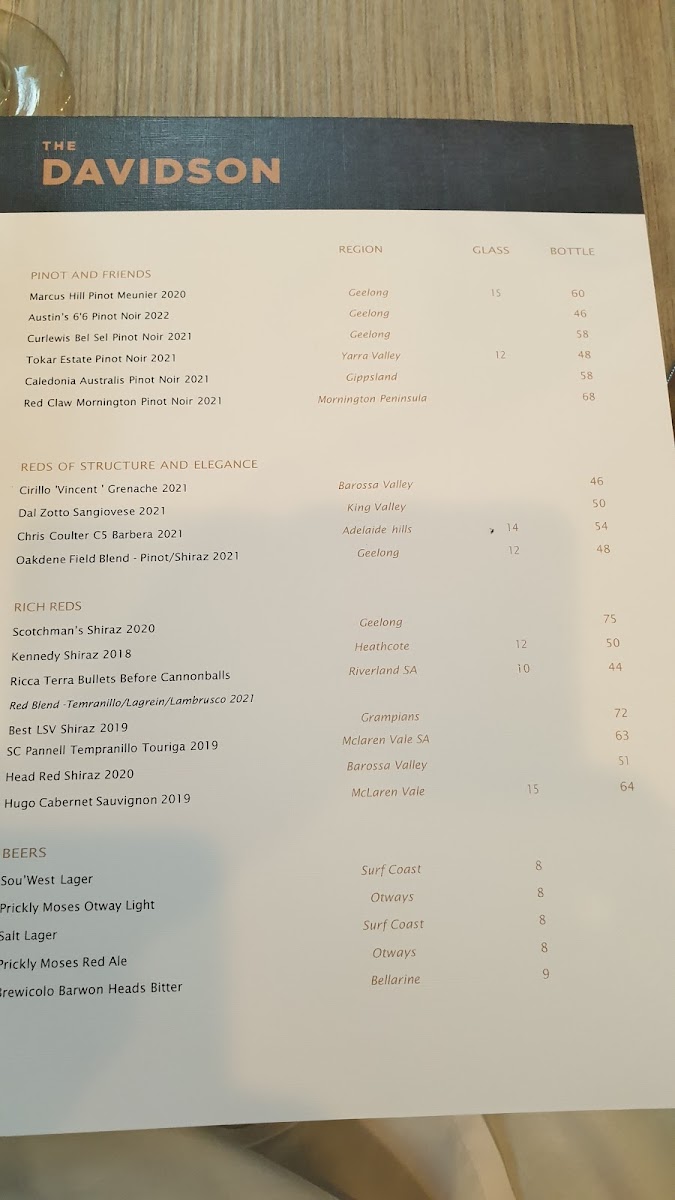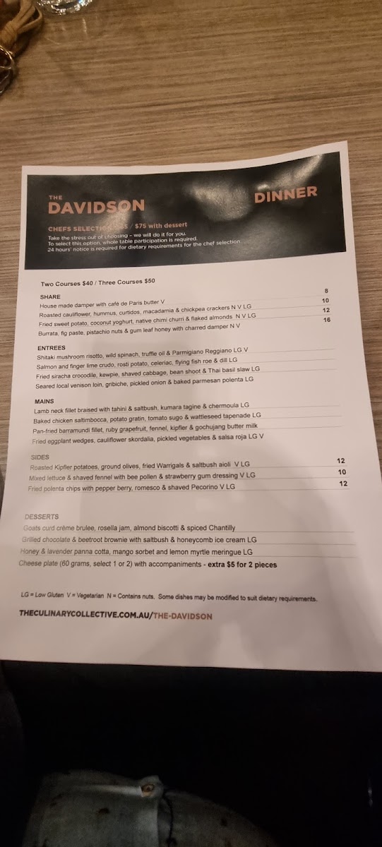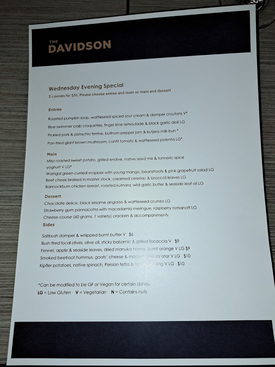 Overall, Davidson Restaurant’s menu offers a well-balanced combination of traditional and modern Australian dishes, each thoughtfully designed to excite the palate. Whether dining for lunch or indulging in the chef’s carefully selected offerings, guests can expect a delightful culinary journey that highlights fresh, seasonal produce and bold, creative flavors.